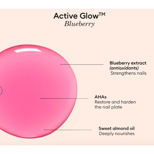 Насыщенный антиоксидантами экстракт черники питает ногтевую пластину, улучшает её текстуру и способствует росту крепких и здоровых ногтей. Активные ингредиенты в составе работают как сыворотка: сглаживают неровности, уменьшают ломкость и улучшают цвет ногтей даже без декоративного покрытия.