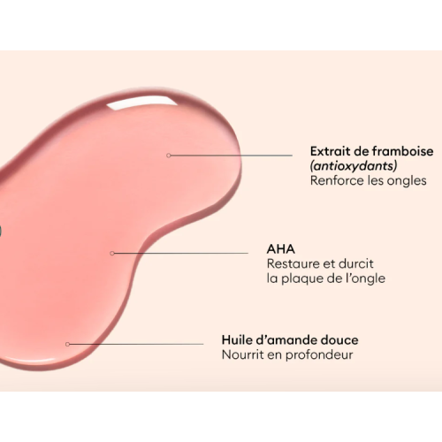 Лак обладает деликатным полупрозрачным малиновым оттенком, который придаёт ногтям ухоженный и свежий вид. Средство визуально выравнивает поверхность ногтя, придаёт глянец и ухаживает за ногтевой пластиной благодаря растительным компонентам и экстракту моркови, известному своими укрепляющими свойствами.