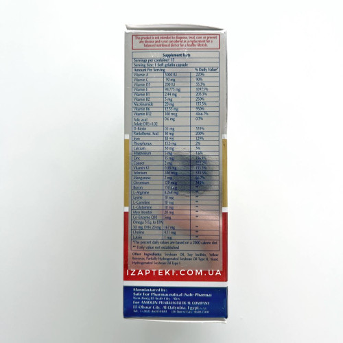 Витамины A, C, E, D, B1, B2, B6, B12, фолиевая кислота, пантотеновая кислота, ниацин, биотин, железо, цинк, медь, марганец, йод, селен, кальций, магний и другие питательные вещества.