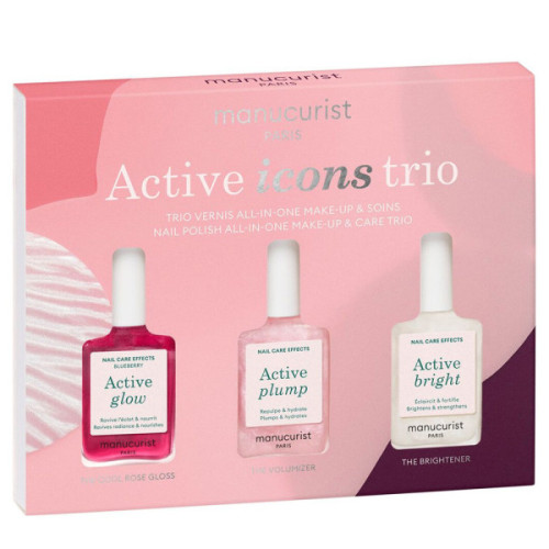 Manucurist Active Icons Trio — це набір багатофункціональних лаків для нігтів із лінії Active, створений для швидкого, акуратного та максимально простого манікюру без бази та топа. Лаки поєднують декоративне покриття й доглядальну формулу, надаючи нігтям доглянутий вигляд уже після першого шару.